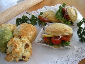 プレーンスコーンのほか、抹茶スコーン・ハーブパセリスコーン・チョコスコーン・アーモンドとレーズンのスコーン・十六穀米スコーン、そしてかわいいサンドイッチスコーンも挑戦!